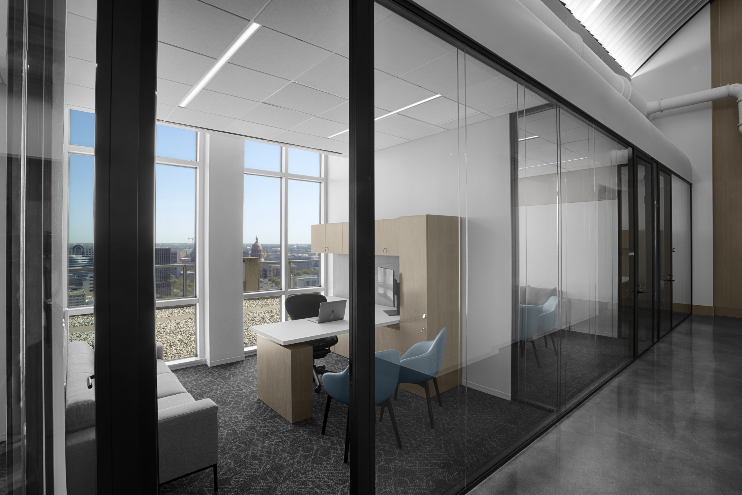 对于他们在休斯顿的位置,建筑师和客户需要具有高声学性能的简约外观。 对于这个特定的任务,建筑师规定了 Maars 双层玻璃隔断墙 Double Horizo​​n。 Double Horizo​​n 将 Maars 熟悉的单玻璃解决方案 Horizo​​n 的高端和简约外观与终极声学性能相结合。