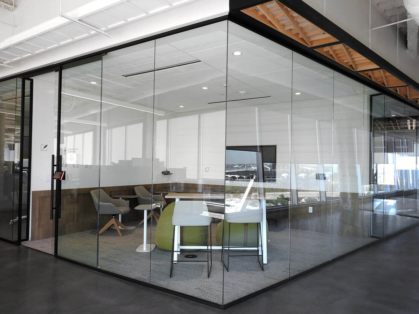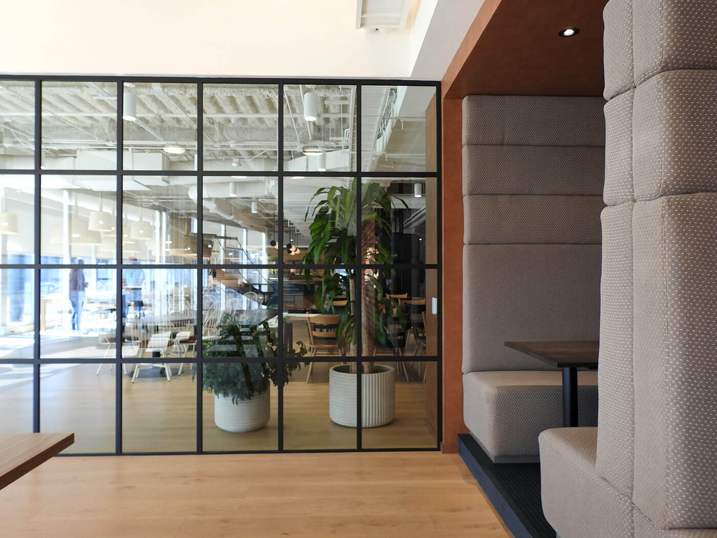 为了创造聚会空间和休息室,同时促进透明度和设计的开放概念,我们的经销商合作伙伴 Precision Walls 安装了带有哑光黑色饰面的 Horizo​​n。 与 Carré 相结合,隔断赋予空间独特的设计和工业气息。 无框玻璃推拉门和平开门有助于实现所需的简约设计。
