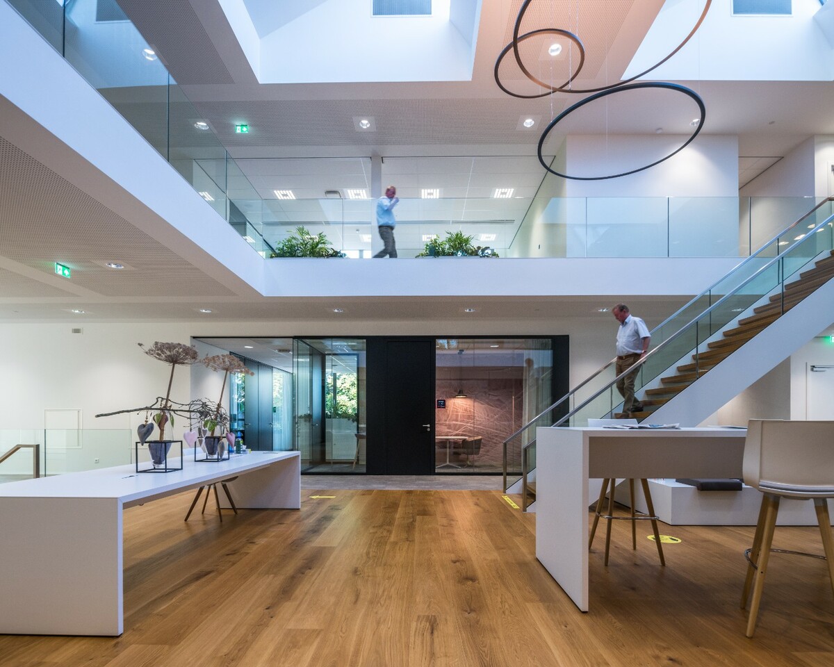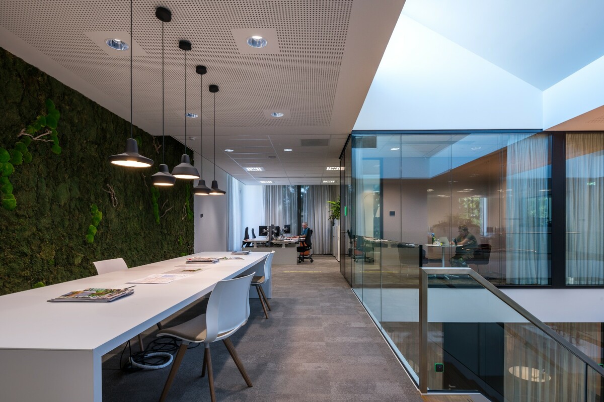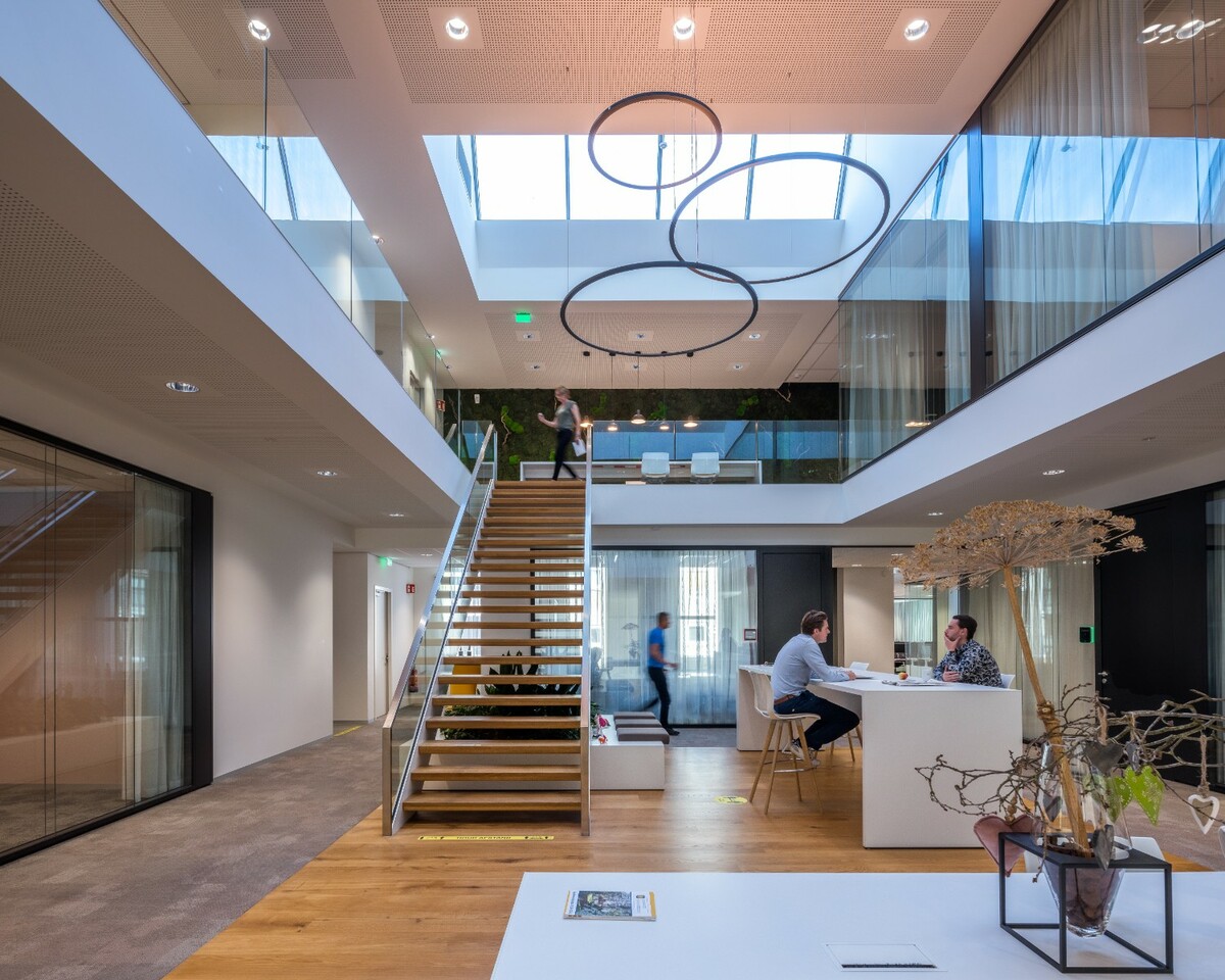 设计必须具有开放和可访问的特点,所有公民都可以感到受欢迎。 为了满足这些要求,我们安装了Panorama玻璃,并结合了嵌入式钢门和玻璃门。 通过 Panorama,我们还创建了这些令人印象深刻的阁楼会议室,有助于空间的开放性。