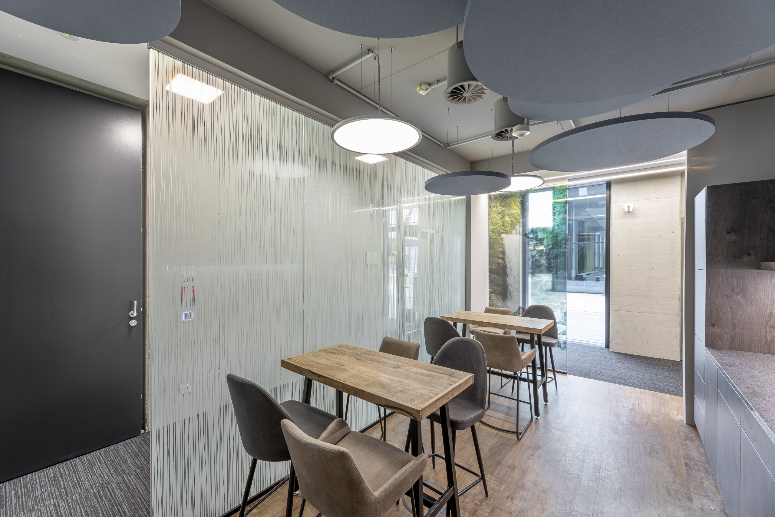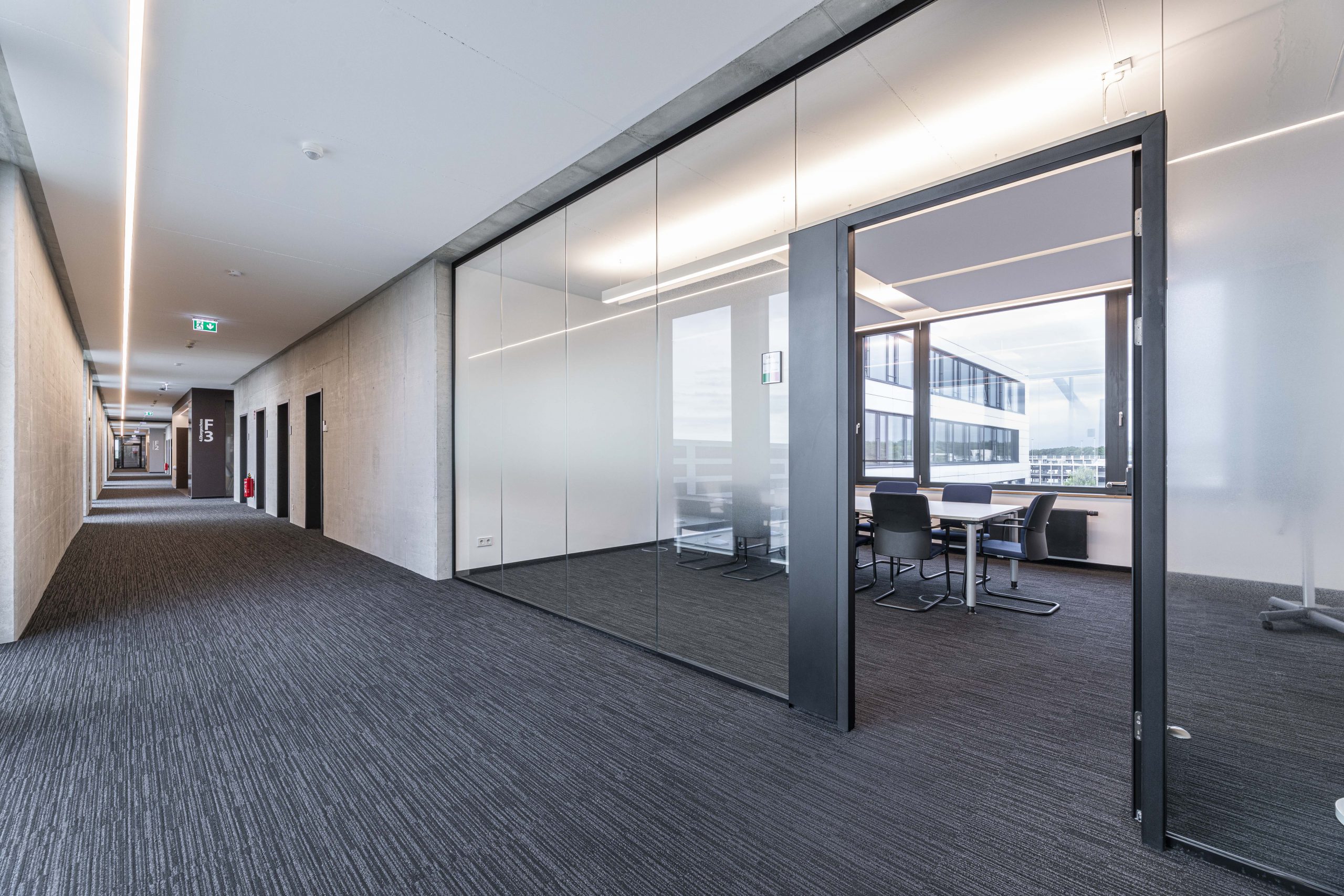 Maars 模块化钢墙解决方案 Metaline 完美地应对了这一挑战。 划分不同空间的所有隔断都是Metaline。 为了确保透明度和开放的交流,我们将 Metaline 与我们的简约玻璃墙解决方案:Horizon 结合在一起。