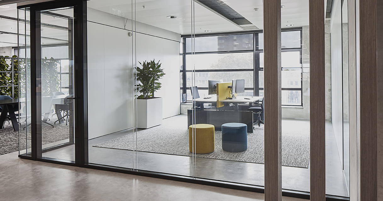 在这个项目中,我们安装了三个隔断:Panorama、Metaline 和 String²。 对于所有类型的隔断,我们都使用纤细的型材来创造所需的设计和声学价值。 我们的隔断与我们的嵌入式玻璃门相结合,为 BDO Tilburg 创造了这种高端设计。