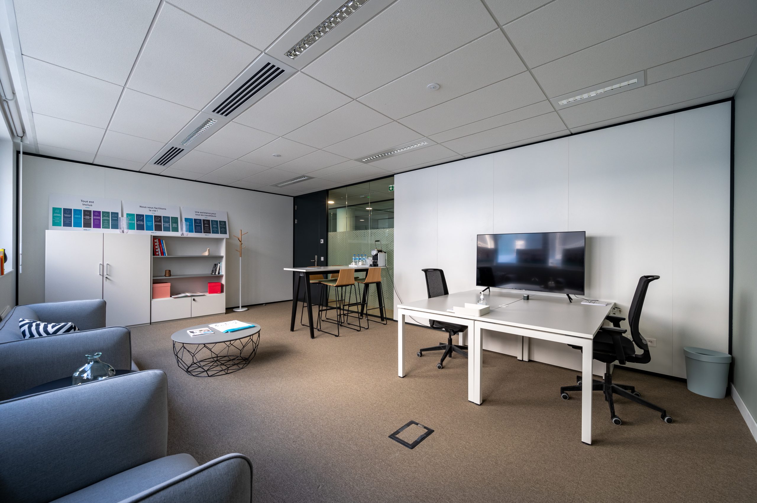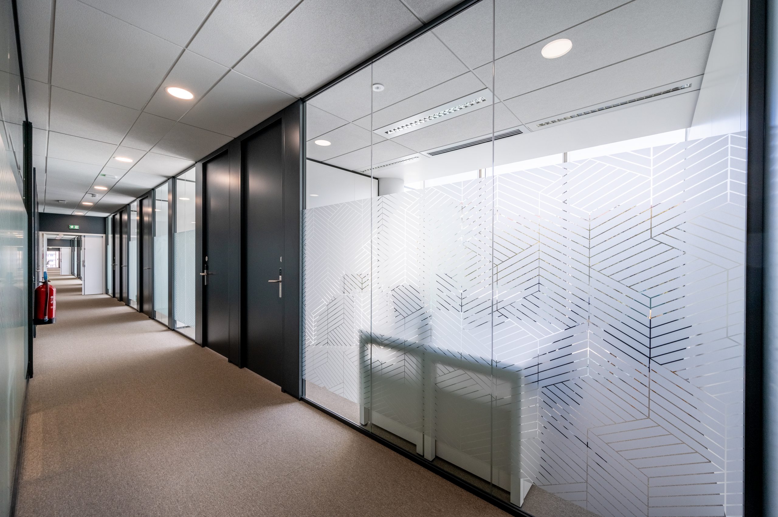 对于这个办公室,我们安装了金属墙作为不同办公室的分隔断。 通过安装灵活的实体隔断,办公空间始终保持灵活。 这样,空间总是可以根据租户的要求进行调整。 为了让所有办公室保持其开放性和透明度,我们安装了 马尔斯玻璃墙 Horizo​​n。 Horizo​​n 以其简约的外观而闻名。