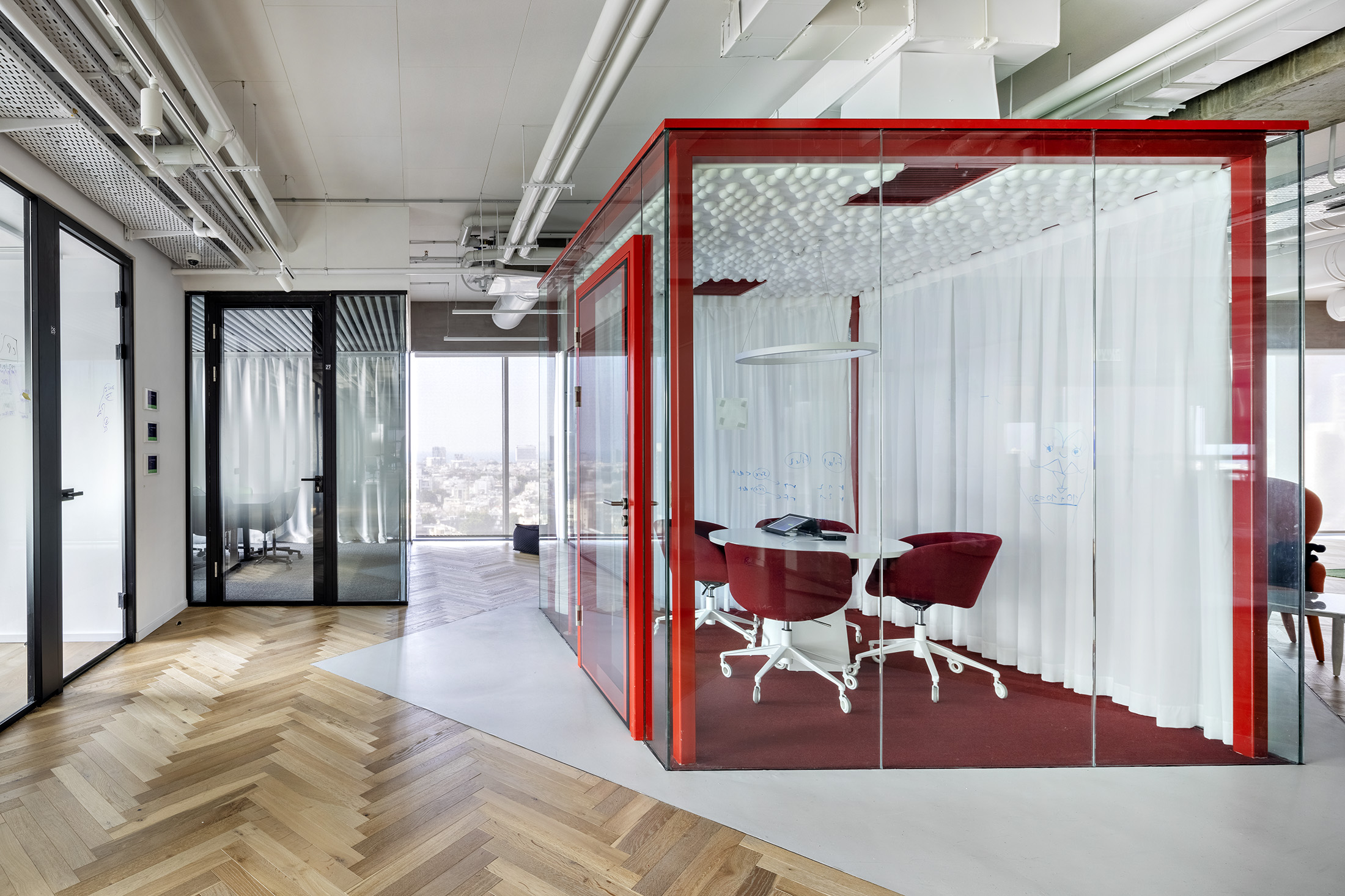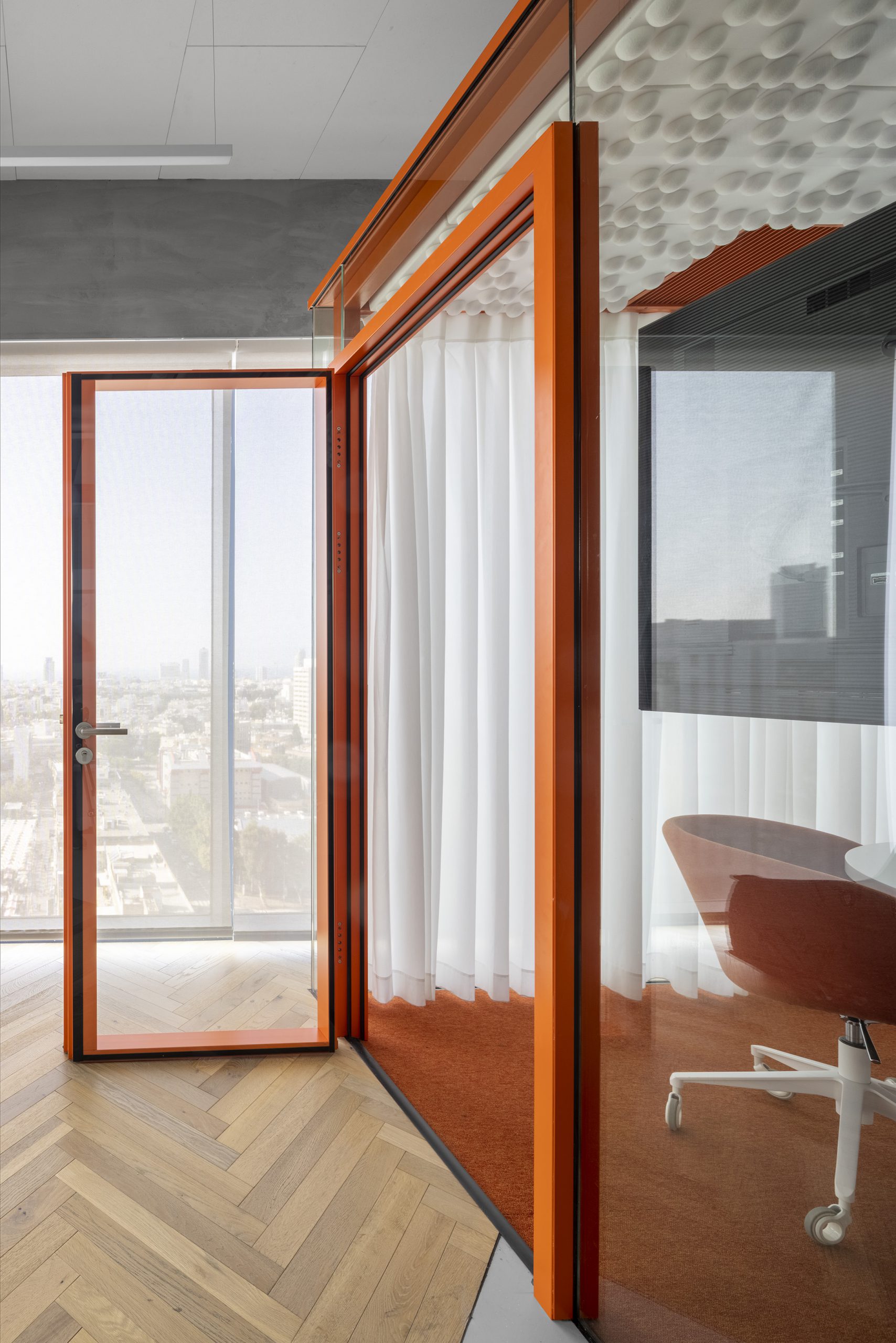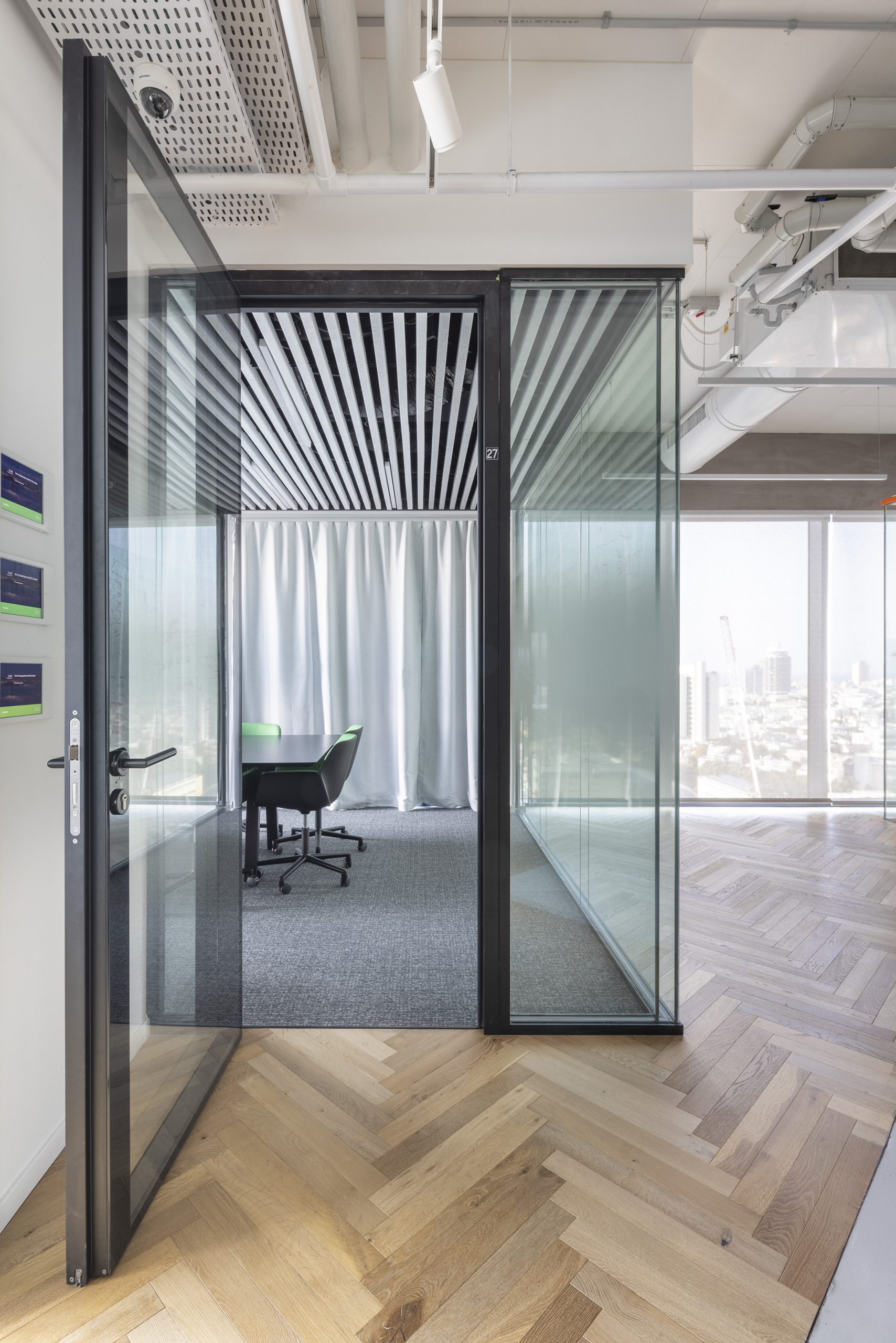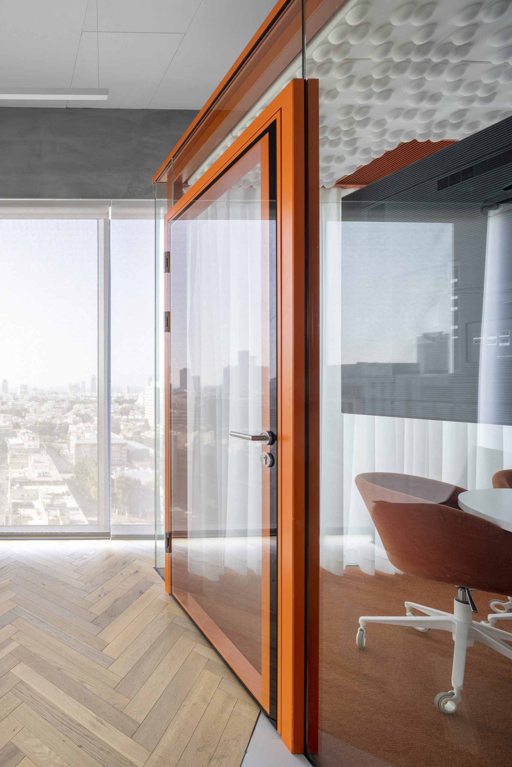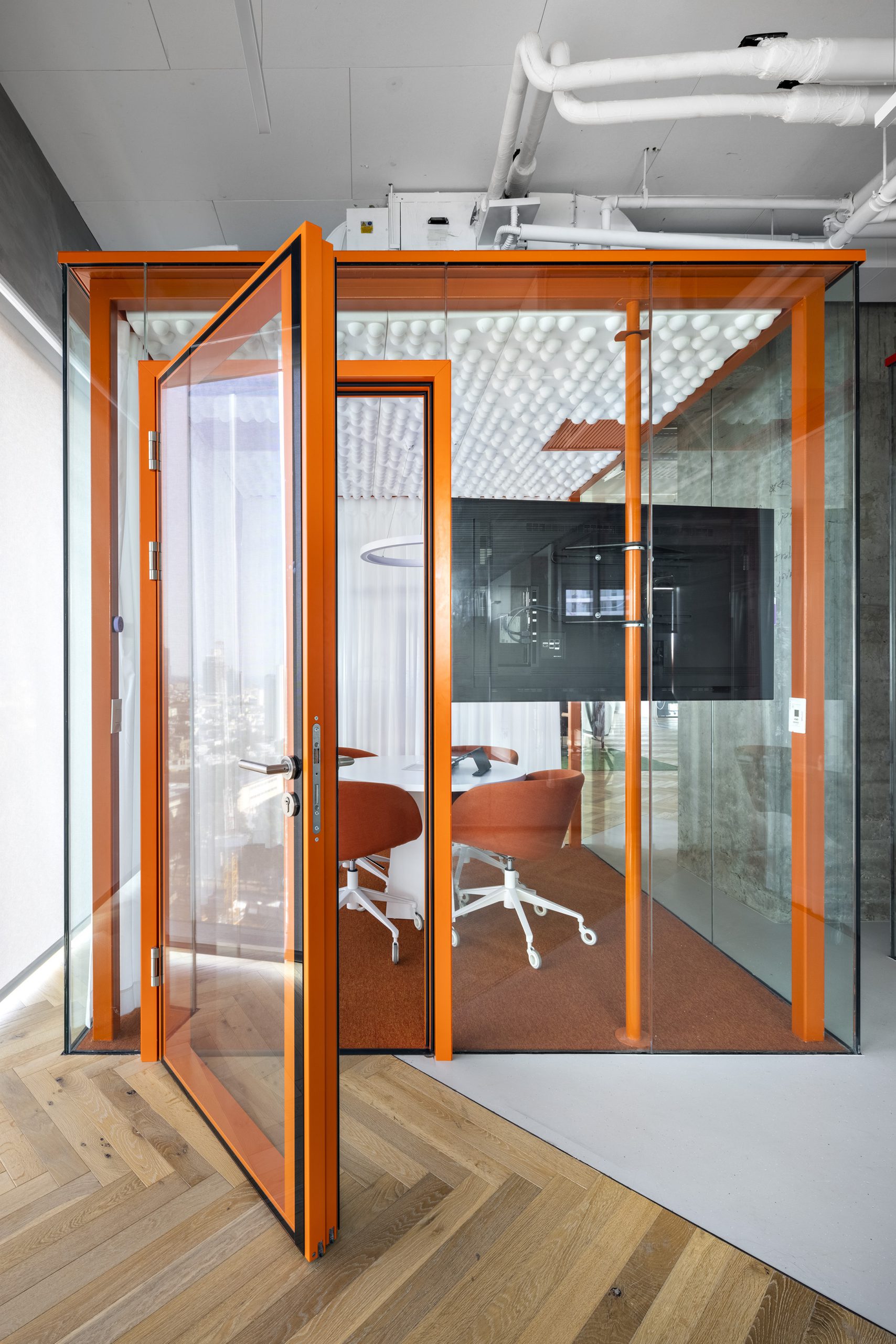 对于这个空间,需要声学隐私。 声学性能与美观和独特的设计同样重要。 我们的双层玻璃墙系统 Panorama 达到了 51 db/SCT 值,确保了最佳声学效果。